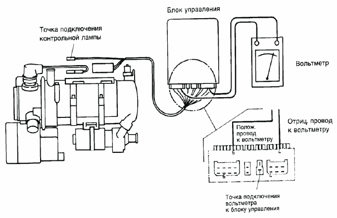 Подключить вольтметр к зажиму 6 (+) 8-контактного разъема и к зажиму 4 (—) 6-контактного разъема блока управления.