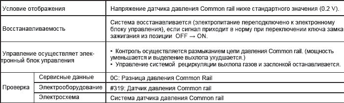 P0192: Н изкое напряжение на датчике давления в системе Common rail
