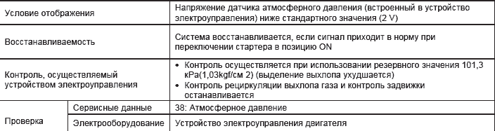 Р0108: Датчик атмосферного давления (индикатор предупредительной лампы: 19)