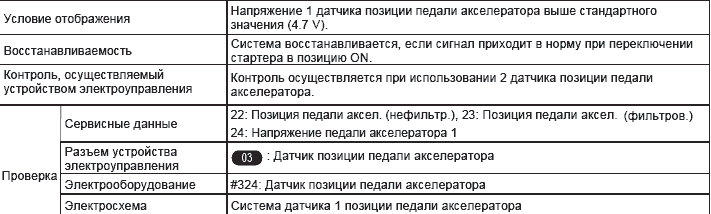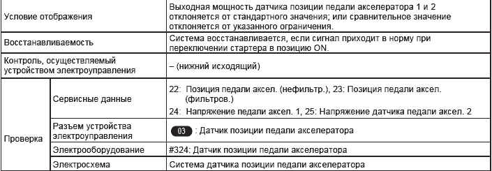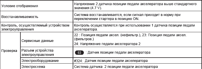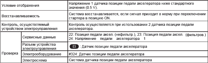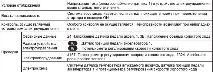 P0122: Датчик педали аксел. 1 (индикатор предупредительной лампы: 24)
