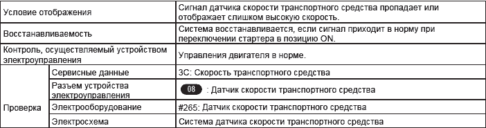 P0500: Датчик скорости транспортного средства (индикатор предупредительной лампы: 25)