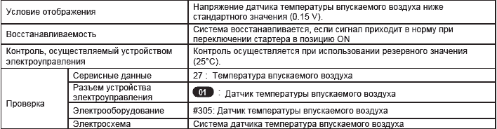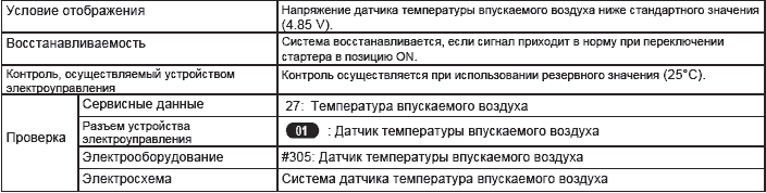 P0113: INT SNSR (Высокая) Темп. воздуха (индикатор предупредительной лампы: 44)