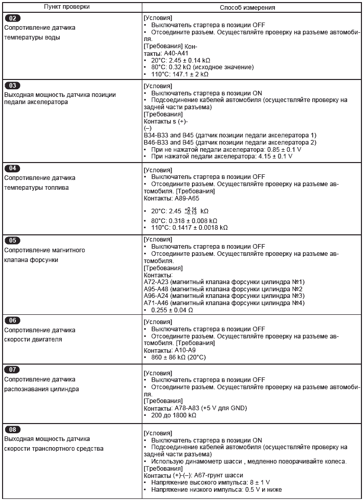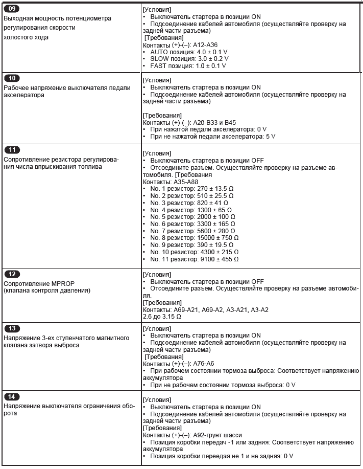 • При осуществлении измерений с помощью тестера, манипулируйте стержнем тестера очень осторожно, чтобы не повредить внутренние схемы и другие электродетали устройства электроуправления и не привести к короткому замыканию между контактами разъема или между разъемом и корпусом автомобиля.