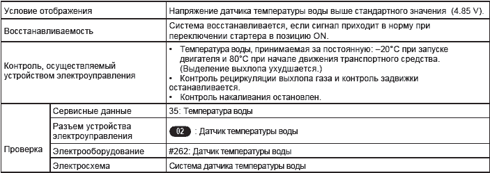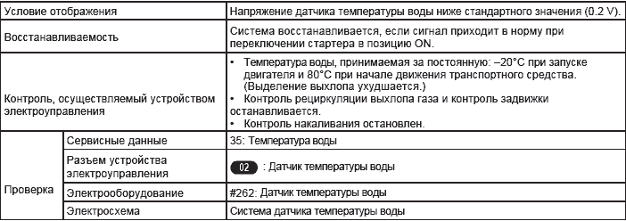 P0117: Темп. воды SNSR (Низ.) (индикатор предупредительной лампы: 21)