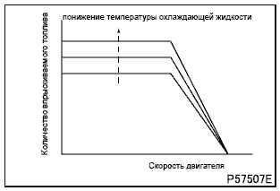 • При запуске двигателя количество впрыскиваемого топлива определяется в соответствии со скоростью двигателя и температурой охлаждающей жидкости.