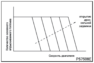 • Количество топлива при основном впрыскивании определяется в соответствии со скоростью двигателя и открытием дроссельной задвижки.