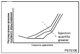 • Регулирование времени основного впрыскивания рассчитывается, исходя из количества впрыскиваемого топлива и скорости двигателя.