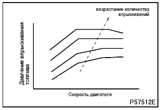 • Давление впрыскивания топлива рассчитывается, исходя из количества впрыскиваемого топлива и скорости двигателя.