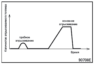 • Пробное впрыскивание осуществляет впрыскивание очень маленькой дозы топлива перед основным впрыскиванием.