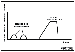 • Раздвоенное впрыскивание осуществляет впрыскивание очень маленькой дозы топлива два и более раз, опережая основное впрыскивание.