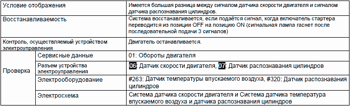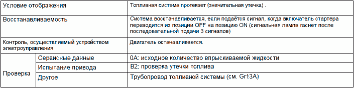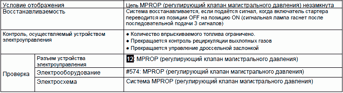 • Контроль в ходе проверки неисправности восстанавливается после её устранения. Однако, для некоторых кодов диагностирования сигнальная лампа продолжает гореть во время неоднократной подачи стандартных сигналов.