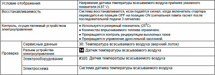Р0113: Датчик температуры всасываемого воздуха (Высокий) (пробле ски сигнальной лампы: 44)