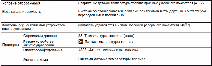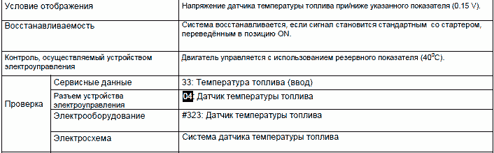 P0183: Датчик температуры топлива (ввод) (Высокий) (проблески сигнальной лампы: 41)