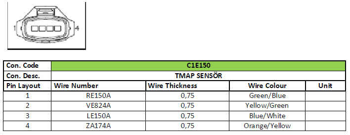 Sensor on engine wiring connector descriptions