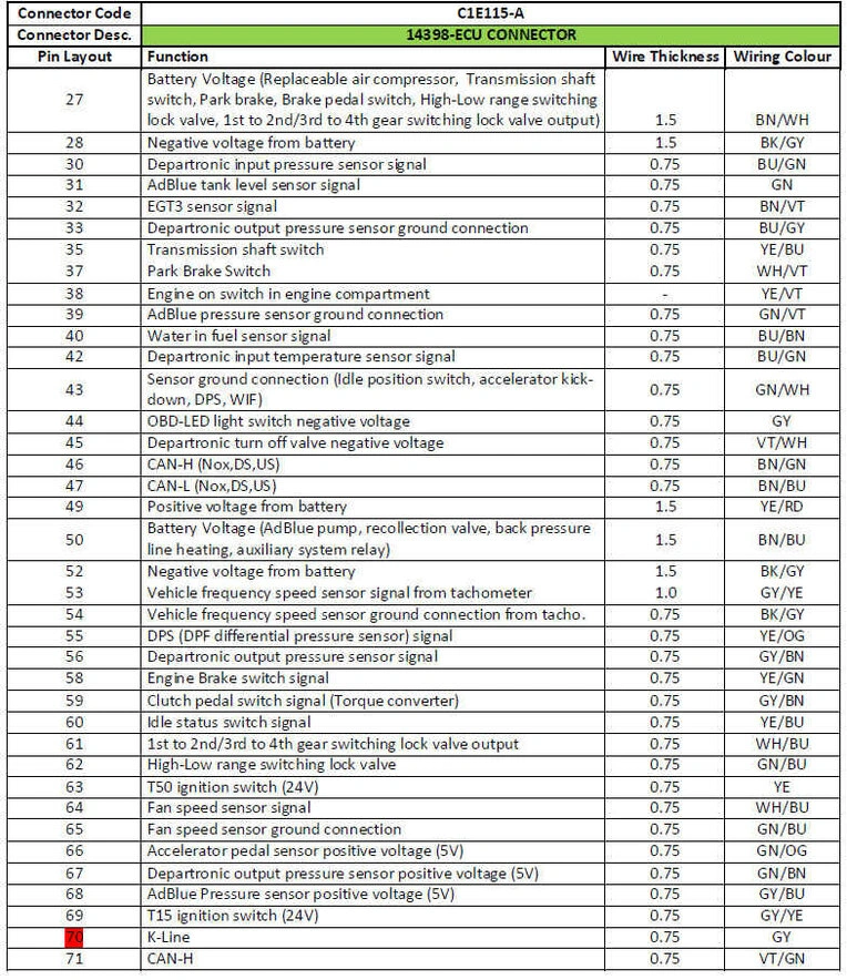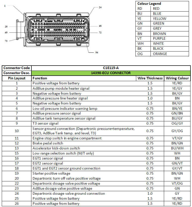 FORD CARGO H566/H476 - Компоненты двигателя и их распиновки
