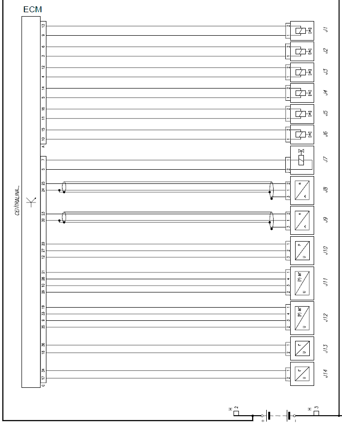 J1 – J2 – J3 = Electro-injectors, cylinders 1, 2, 3 respectively