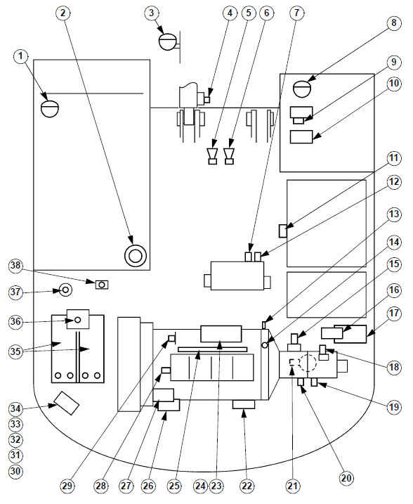 1. When the contact switch (1) is in the starting position the starting signal is sent simultaneously to the starter motor and the engine electronic control box.
