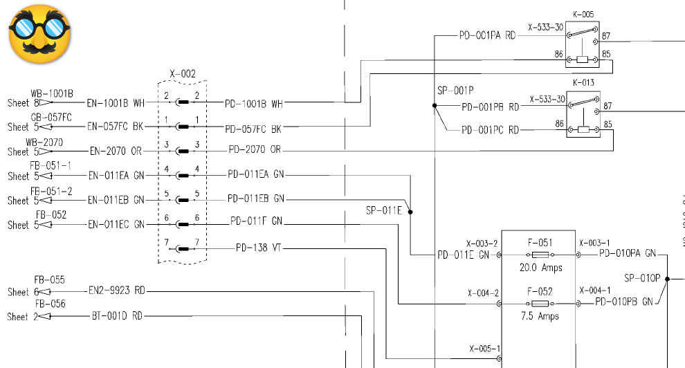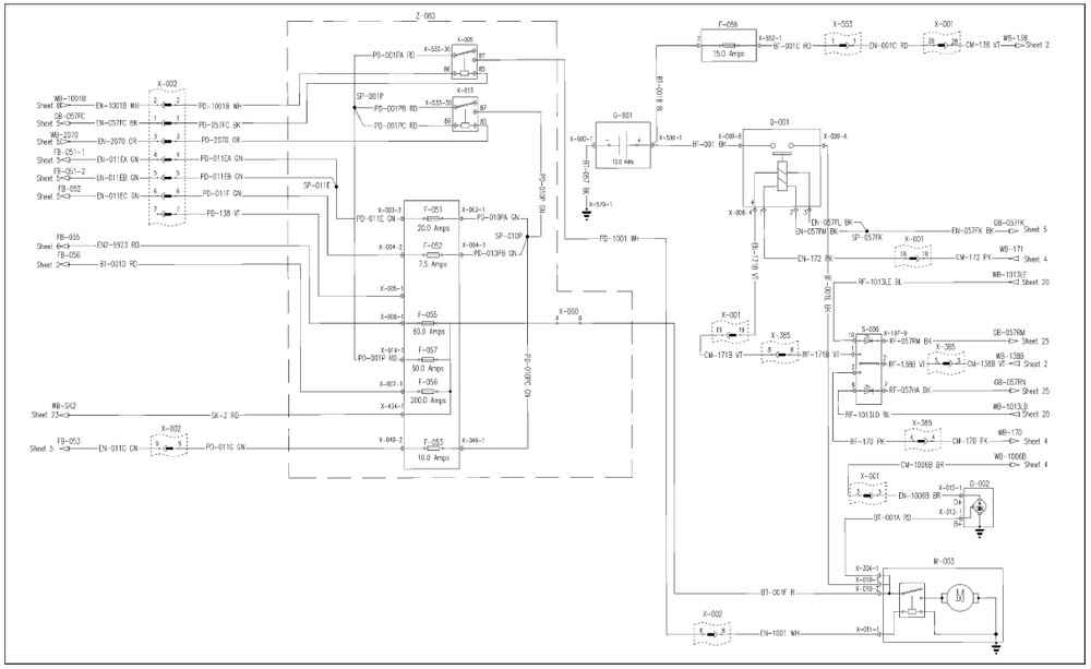 Wiring harnesses - Electrical schematic sheet 01 - STARTING, CHARGING, POWER DISTRIBUTION and FUSES
