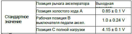 Выходная мощность датчика позиции педали акселератора