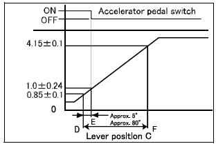 • При не нажатой педали акселератора: 0.85 ± 0.1 V
