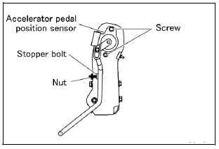 • Для регулировки выходной мощности для позиции холостого хода А открутите винты и подвигайте датчик позиции педали акселератора. Затем затяните винты.