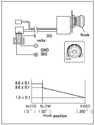 • Примените 5 вольт DC к контактам 1 и 2 потенциометра регулирования скорости холостого хода.