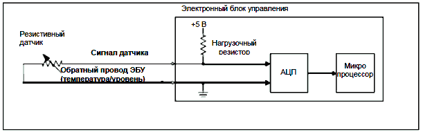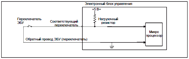 замкнуто. В состоянии «разомкнуто» внутренний сигнал 5 В подается ЭБУ через нагрузочный