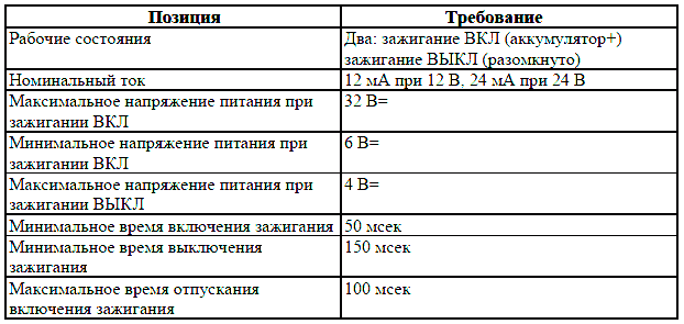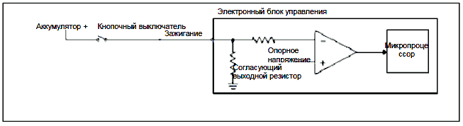 Переключаемый согласующий ввод передает сигнал зажигания на ЭБУ. Если кнопочный
