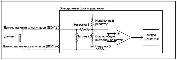 конфигурацию. Датчик магнитных импульсов (ДСА) питает дифференциальный ввод приблизительно