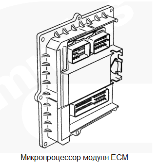 Внутренняя ошибка модуля ECM. Возможно на работе не скажется или приведет к резкому падению оборотов двигателя. Характеристика цепи Модуль ECM контролирует напряжение выходного сигнала на форсунки и входной сигнал на модуль ECM с датчиков двигателя. Местонахождение узла Модуль ECM закреплен болтами на со стороны впускного коллектора блока цилиндров, вблизи передней поверхности двигателя. Практические советы