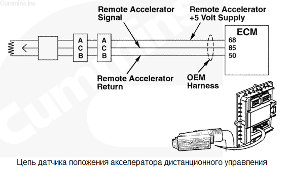 На контакте сигнальной цепи датчика положения акселератора дистанционного управления обнаружено низкое напряжение сигнала. На сигналы акселератора дистанционного управления двигатель может не реагировать. Характеристика цепи При нажатии педали акселератора дистанционного управления водителем на модуль ECM педаль акселератора дистанционного управления подает команду через жгут проводов комплектного оборудования и через жгут проводов интерфейса комплектного оборудования. Модуль ECM использует этот сигнал для управления подачей топлива. Местонахождение узла Местонахождение педали акселератора дистанционного управления зависит от производителя комплектного оборудования. Руководство по диагностике неисправностей и ремонту комплектного оборудования Практические советы Датчик положения акселератора представляет собой потенциометр. Для него предусмотрены следующие номинальные характеристики сопротивления.