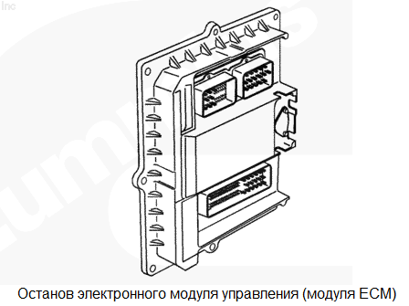 Внутренняя программная ошибка модуля ECM. Возможно это не повлияет на работу двигателя либо двигатель будет работать неустойчиво или не запустится. Характеристика цепи Модуль ECM представляет собой компьютер, управляющий работой двигателя с помощью откалиброванного программного обеспечения и электронных элементов системы. Для этого требуется подача электропитания напрямую от аккумуляторной батареи через неотключаемую цепь питания; модуль ECM также контролирует состояние входного сигнала пускового включателя. Если пусковой включатель повернут в положение "ВЫКЛ.", то модуль ECM начнет процесс остановки двигателя. Местонахождение узла Модуль ECM расположен с левой стороны двигателя. |