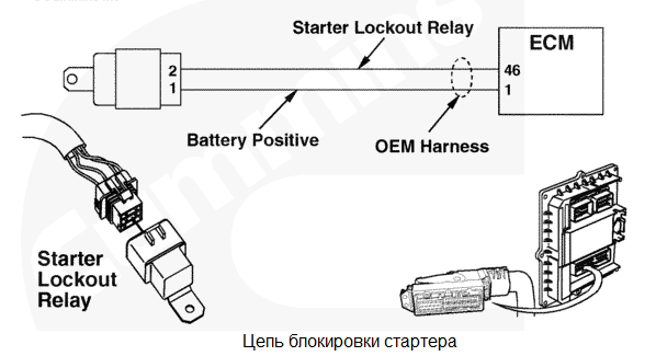 В цепи реле блокировки стартера обнаружена неисправность. Функция блокировки стартера работать не будет. Оператор сможет включать стартер при работающем двигателе. Характеристика цепи Если функция блокировки стартера включена, а двигатель уже запустился и работает, то функция блокировки стартера не позволит стартеру включаться. Это сделано для увеличения его срока службы. Эта функция может быть включена с помощью диагностического комплекта INSITE™. Местонахождение узла Реле блокировки стартера поставляется производителем комплектного оборудования. Как правило, оно устанавливается вблизи реле стартера. Практические советы Сигнал блокировки стартера указывает на то, что двигатель работает. Этот сигнал используется для включения реле, которое отключает подачу пускового напряжения на существующее реле стартера комплектного оборудования во избежание несанкционированного проворачивания коленчатого вала, которое может приводить к сокращению срока службы стартера. Этот сигнал используется функцией блокировки стартера (когда она включена). |