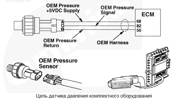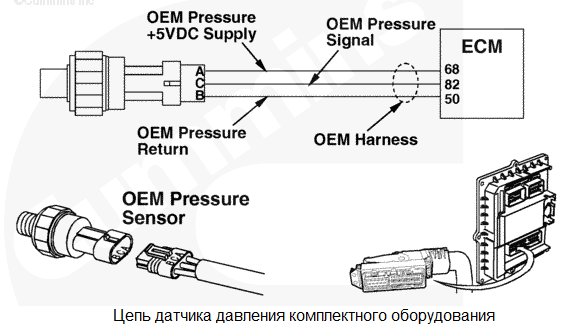 Давление комплектного оборудования вне пределов нормативного диапазона. Напряжение сигнала на контакте сигнала давления комплектного оборудования указывает на то, что давление комплектного оборудования превышает пороговое значение, установленное производителем комплектного оборудования. Зависящее от калибровки, прогрессирующее снижение мощности и остановка двигателя с увеличением времени после подачи предупреждающего сигнала. Характеристика цепи Датчик давления комплектного оборудования используется электронным модулем управления (ECM) для контроля давления смазки комплектного оборудования. Модуль ECM контролирует напряжение на сигнальном контакте, преобразуя его в давление. Модулем ECM полученное значение давления комплектного оборудования используется для системы защиты двигателя. Местонахождение узла Расположение датчика зависит от области применения и установки комплектного оборудования. Руководство по диагностике неисправностей и ремонту комплектного оборудования Практические советы