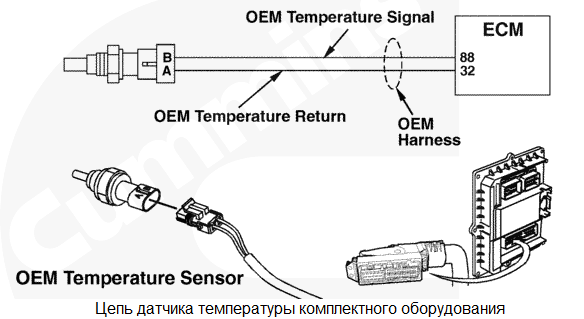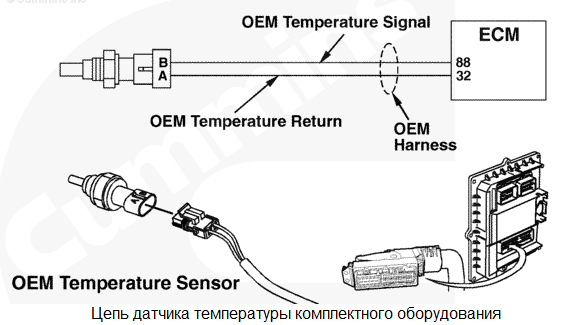 Температура комплектного оборудования вне нормативного диапазона. Напряжение сигнала на контакте сигнала температуры комплектного оборудования указывает на то, что температура комплектного оборудования превышает пороговое значение, установленное производителем комплектного оборудования. Зависящее от калибровки, прогрессирующее снижение мощности и остановка двигателя с увеличением времени после подачи предупреждающего сигнала. Характеристика цепи Датчик температуры комплектного оборудования используется электронным модулем управления (ECM) для контроля температуры одного из элементов комплектного оборудования или рабочих условий двигателя. Модулем ECM значение температуры комплектного оборудования используется для системы защиты двигателя. Местонахождение узла Этот датчик устанавливается производителем комплектного оборудования. Местоположение узлов указано в Руководстве по диагностике неисправностей и ремонту комплектного оборудования. Практические советы Убедитесь в отсутствии препятствий на пути воздушного потока. |