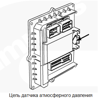 Неисправность датчика атмосферного давления (внутреннего датчика модуля ECM). Возможно появление черного дыма. Может повлиять на работу системы защиты двигателя. Функция снижения частоты вращения с высотой работать не будет. Характеристика цепи Датчик атмосферного давления контролирует атмосферное давление и через жгут проводов двигателя передает данные в электронный модуль управления (ECM). Местонахождение узла Датчик атмосферного давления находится внутри модуля ECM. Практические советы Чтобы проверить соответствие показаний давления фактическому давлению воздуха, с помощью диагностического комплекта проверьте показания атмосферного давления. |