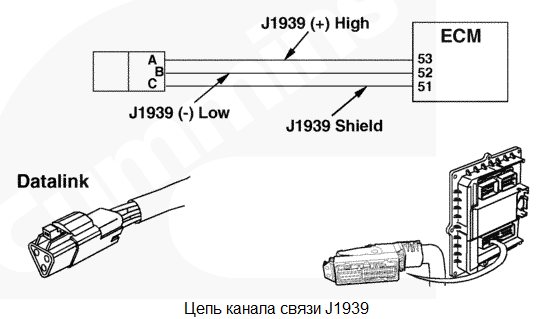 Потеря связи между электронным модулем управления (ECM) и другим устройством по каналу связи J1708. Влияние на рабочие характеристики отсутствует. Возможно, устройства, подключенные к каналу связи J1708, не будут работать. Характеристика цепи Такие устройства, как контроллеры автоматической системы тормозов, автоматические коробки передач, электронный модуль (модули) управления транспортным средством, автоматические противобуксовочные системы, электронные дисплеи и информационные системы и диагностические приборы обмениваются данными с модулем ECM по каналу связи J1708. Сообщения, получаемые модулем ECM от них, используются для управления двигателем. Этим устройствам модуль ECM посылает данные также по каналу связи J1708. Этот канал связи также обеспечивается с помощью 89-контактного жгута проводов комплектного оборудования, положительного сигнала (+) канала связи J1587 на контакте № 31 и отрицательного сигнала (-) канала связи J1587 на контакте № 30. Местонахождение узла Разъем канала связи J1708 расположен на жгуте проводов двигателя вблизи паспортной таблички двигателя, со стороны впускного коллектора. Практические советы Этот код неисправности появляется, когда модуль ECM начинает опрашивать любое другое устройство по каналу связи J1708 и обнаруживает отсутствие связи. Возможные причины отказа: отсоединение диагностического комплекта INSITE™ перед отключением модуля ECM, временами проявляющаяся неисправность в цепи канала связи J1708, попытка модуля ECM (или другого устройства сети J1708) установить связь из-за наличия неисправности в цепи или из-за непрерывной отправки слишком большого количества сообщений |