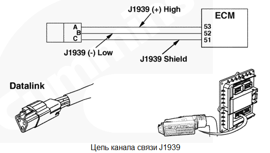 Недостаточно быстрый обмен данными между электронным модулем управления (ECM) и другим устройством по каналу связи J1939. Влияние на рабочие характеристики отсутствует. Возможно, устройства, подключенные к каналу связи J1939, не будут работать. Характеристика цепи Такие устройства, как контроллеры автоматической системы тормозов, автоматические коробки передач, электронный модуль (модули) управления транспортным средством, автоматические противобуксовочные системы, электронные дисплеи и информационные системы и диагностические приборы обмениваются данными с модулем ECM по каналу связи J1939. Сообщения, получаемые модулем ECM от них, используются для управления двигателем. Этим устройствам модуль ECM посылает данные также по каналу связи J1939. Местонахождение узла Модуль ECM установлен на двигателе со стороны впускного коллектора в передней части. Проводка и устройства канала связи J1939 могут быть различными для разных типов комплектного оборудования. Практические советы Этот код неисправности появляется, когда модуль ECM начинает опрашивать любое другое устройство по каналу связи J1939 и обнаруживает отсутствие связи. Возможные причины отказа: отсоединение диагностического комплекта INSITE™ перед отключением модуля ECM, временами проявляющаяся неисправность в цепи канала связи J1939, попытка модуля ECM (или другого устройства сети J1939) установить связь из-за наличия неисправности в цепи или из-за непрерывной отправки слишком большого количества сообщений. |