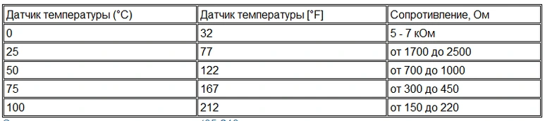 На контакте сигнальной цепи температуры во впускном коллекторе обнаружено низкое напряжение сигнала. В качестве температуры во впускном коллекторе используется стандартное значение. Защита двигателя по температуре во впускном коллекторе отсутствует. Характеристика цепи Датчик температуры/давления воздуха во впускном коллекторе используется электронным модулем управления (ECM) для контроля температуры всасываемого воздуха, поступающего в двигатель. Сигнал температуры во впускном коллекторе используется модулем ECM для вспомогательных пусковых устройств, синхронизации и управления подачей топлива. Местонахождение узла Датчик температуры/давления воздуха во впускном коллекторе расположен в корпусе впускной системы. Практические советы Если показания датчика соответствуют значениям в следующей таблице, то датчик работает нормально ![]() |