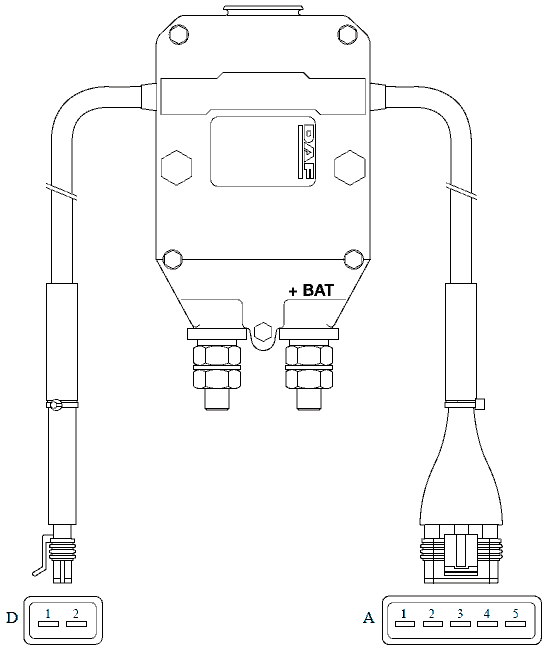 Одновременно включается реле R001, имеется выход 24 В в блоке главного выключателя на контакте D1 для включения реле, и вход сигнала "массы" (0 В) на контакте D2 для проверки наличия соединения