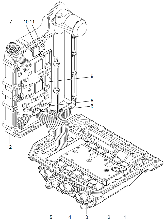 Модулятор коробки передач (3) состоит из электронных устройств управления коробкой передач,