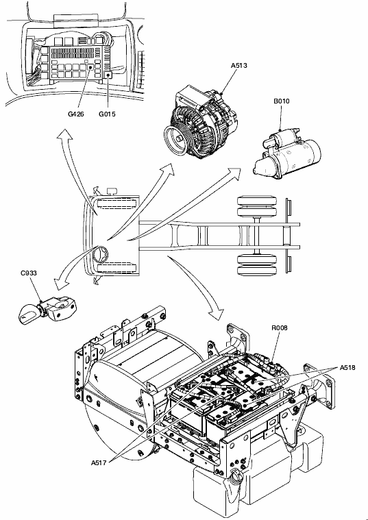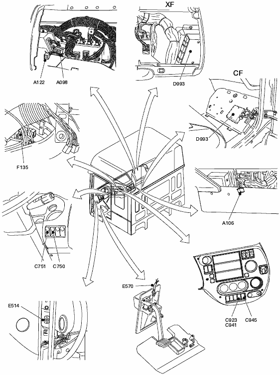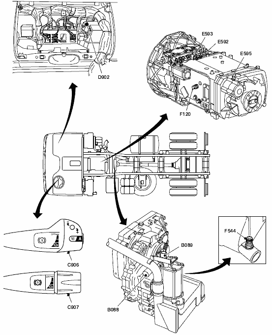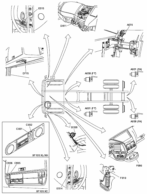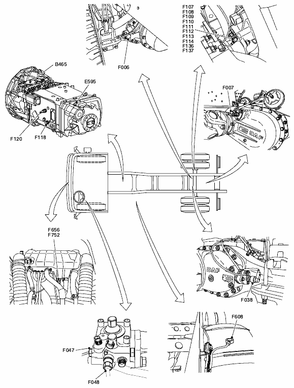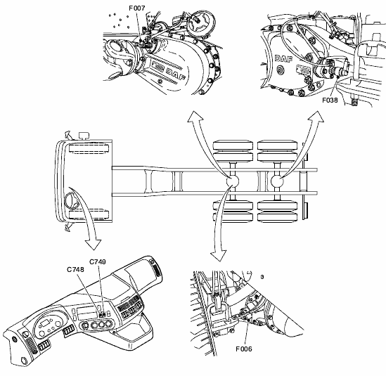 Перечень и расположение компонентов DAF CF75 IV/CF85 IV/XF105