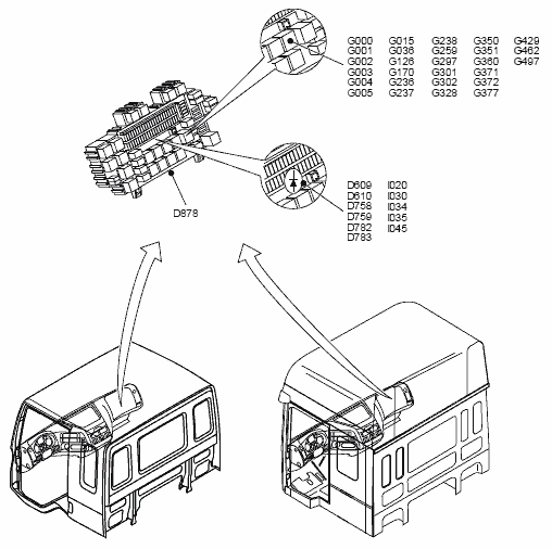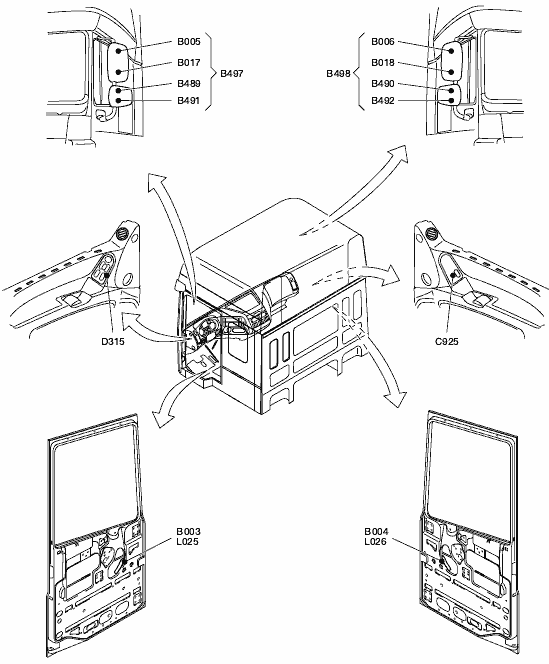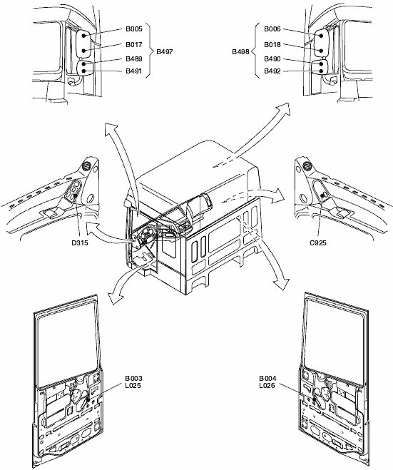 Информация о расположении Body Builder Module (BBM), кабина