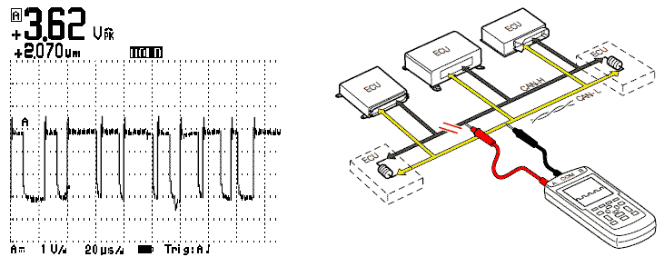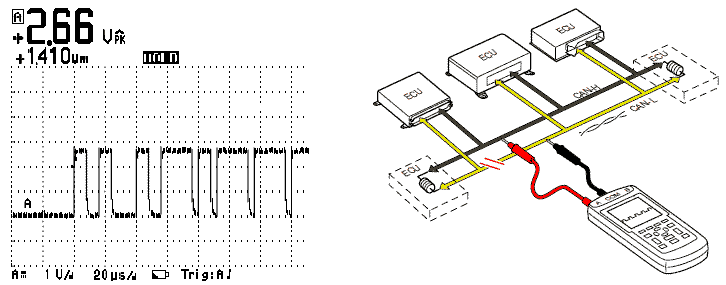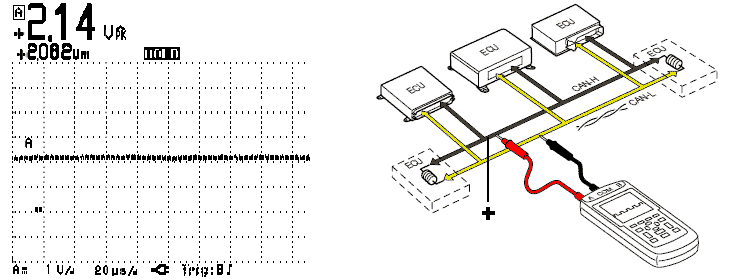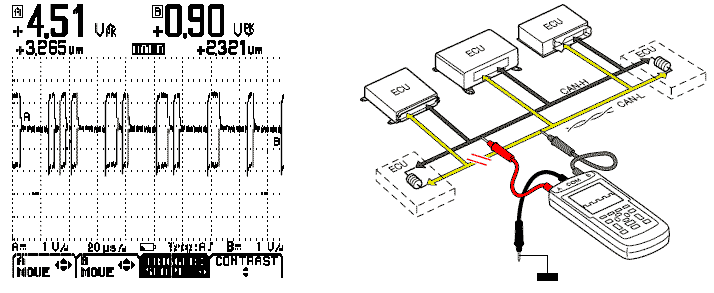 непрерывно измеряя "Сигнал CAN-H / CAN-L" или "Дифференциальный сигнал CAN-H / CAN-L".