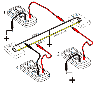 Измерение между источником питания и линиями CAN-H и CAN-L