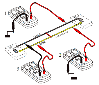 Измерение между "массой" и линиями CAN-H и CAN-L