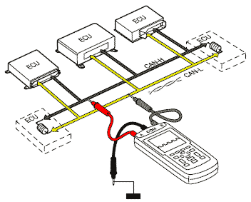 - Измерение между линиями CAN-H и CAN-L