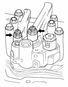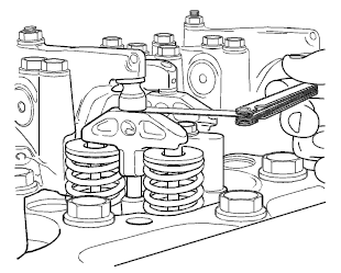 ■ В зависимости от положения двигателя на некоторые седла коромысел действует натяжение пружин клапанов.