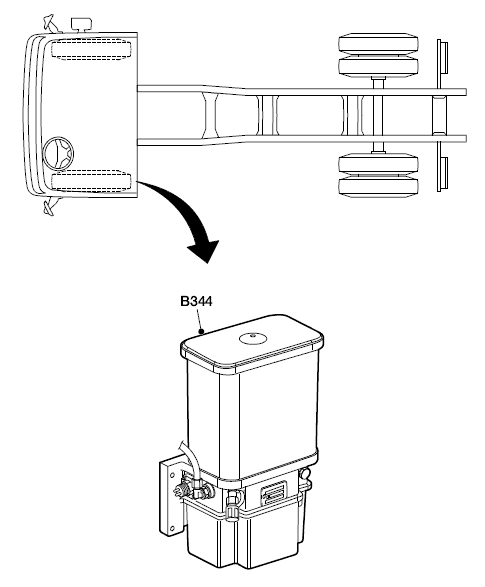 Насос (8) приводится в действие блоком управления. Затем смазка подается из резервуара (9) через основной трубопровод (5) в блоки распределения. Насос продолжает работать в течение всего цикла работы насоса. Насос продолжает создавать давление смазки в течение всего цикла. При определенном давлении клапан управления давлением (2) открывается, подача смазки в основной трубопровод прекращается, и смазка возвращается в резервуар. Так давление смазки ограничивается максимальным значением. Давление смазки контролируется встроенным реле давления смазки (6). Если давление смазки остается ниже 30 бар в течение цикла смазки, электронный блок подает сигнал тревоги. При этом на щитке приборов загорается предупреждающий символ. С правой стороны между муфтой