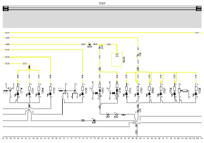 При включении переключателя освещения (С622), напряжение подается через диод D609 на контактный вывод 85 реле G000 через предохранитель Е084 и выключатель освещения (С622) (контакты 2 – 4) и провод 2110.